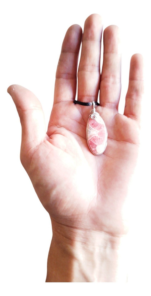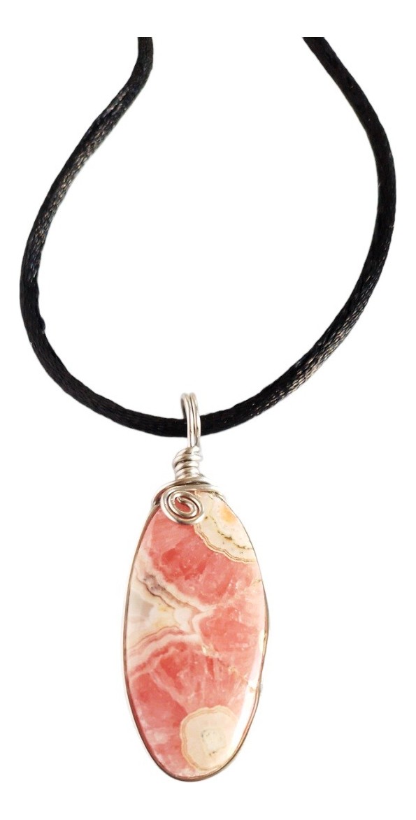 Dije Piedra Rodocrosita Con Cordon Regulable, En Acero.