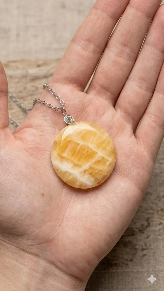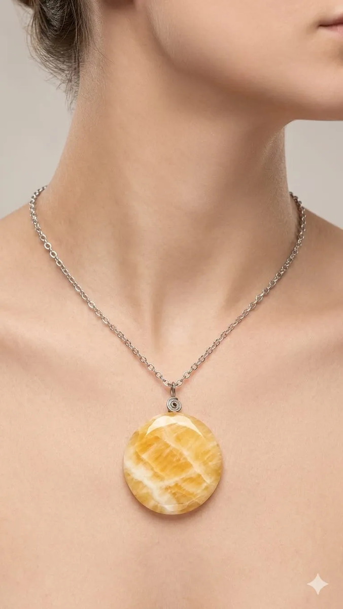Onix Amarillo – Naranja, Dije En Acero Con Piedra Natural.