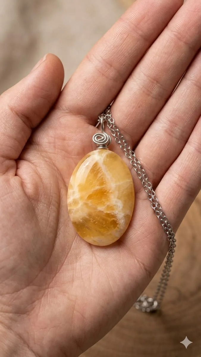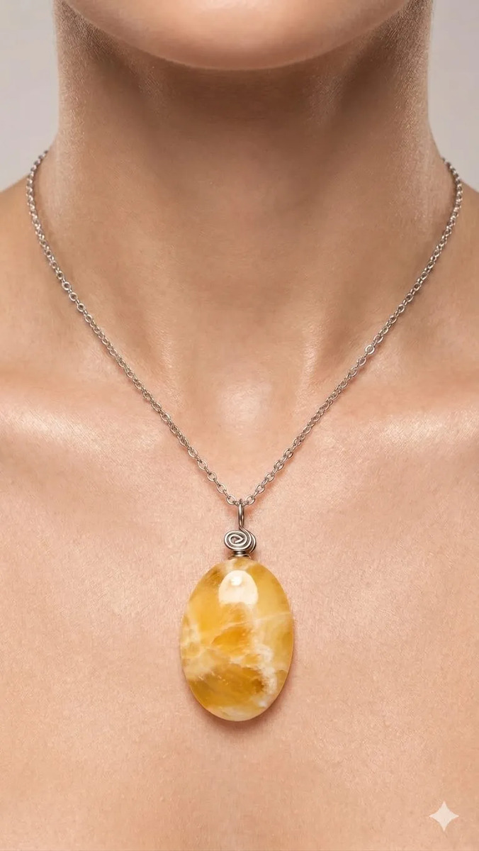 Onix Amarillo – Naranja, Dije En Acero Con Piedra Natural.