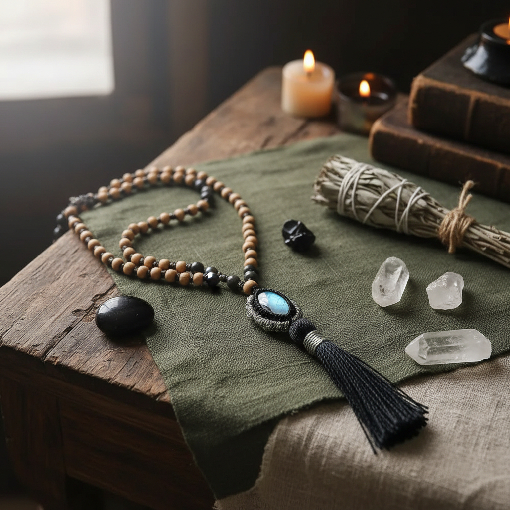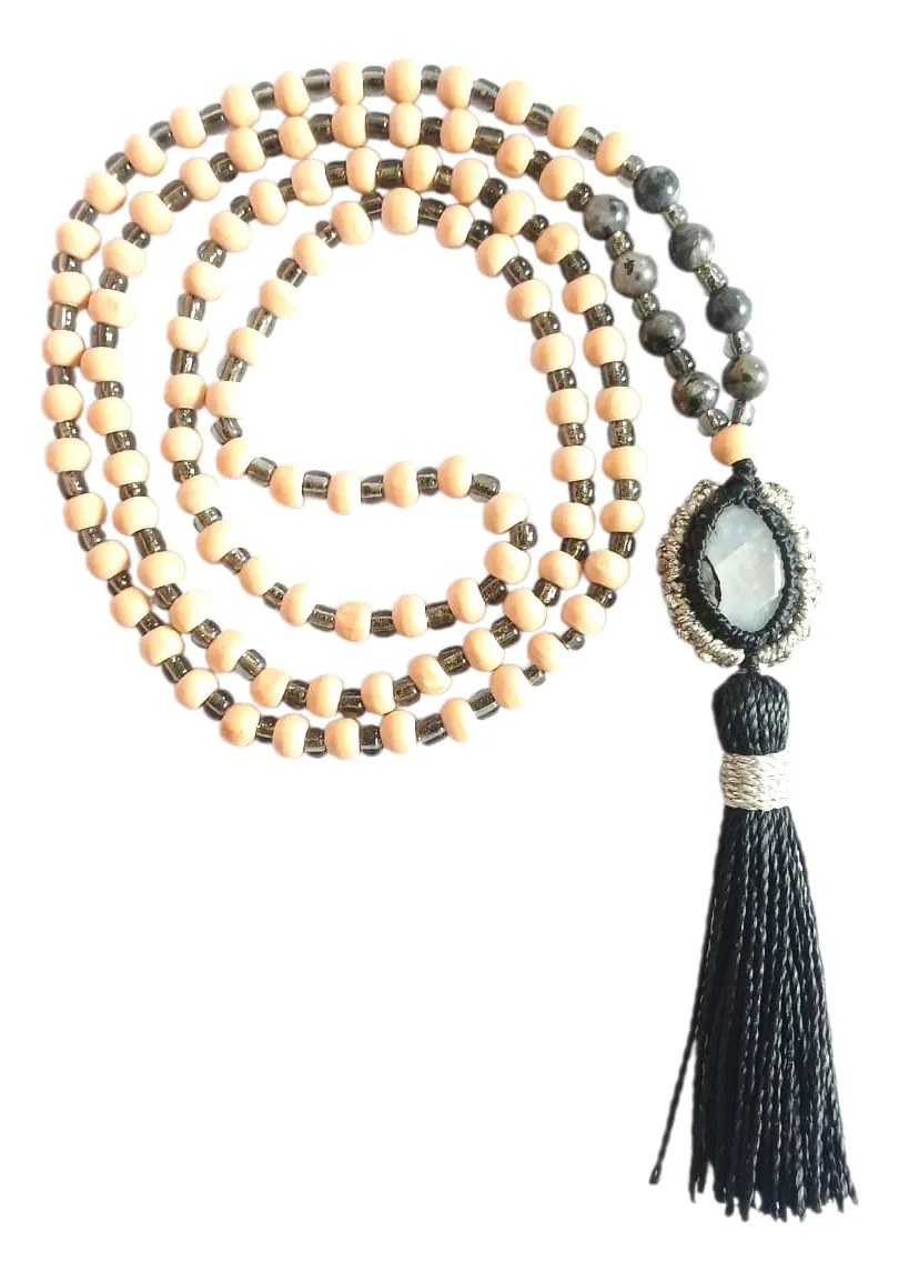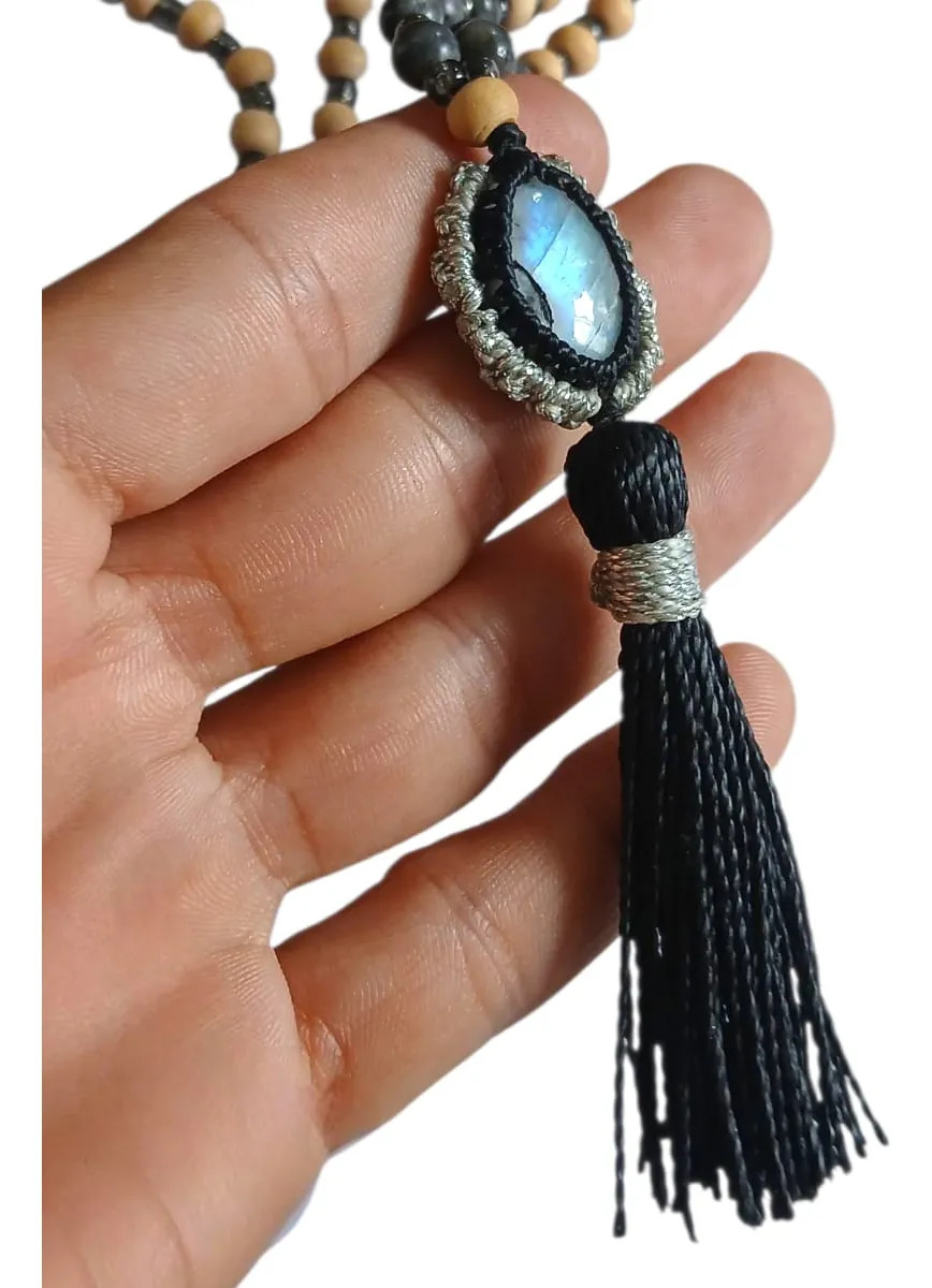 Japa Mala Rosario Tibetano 108 Cuenta. Piedra Luna-intuición