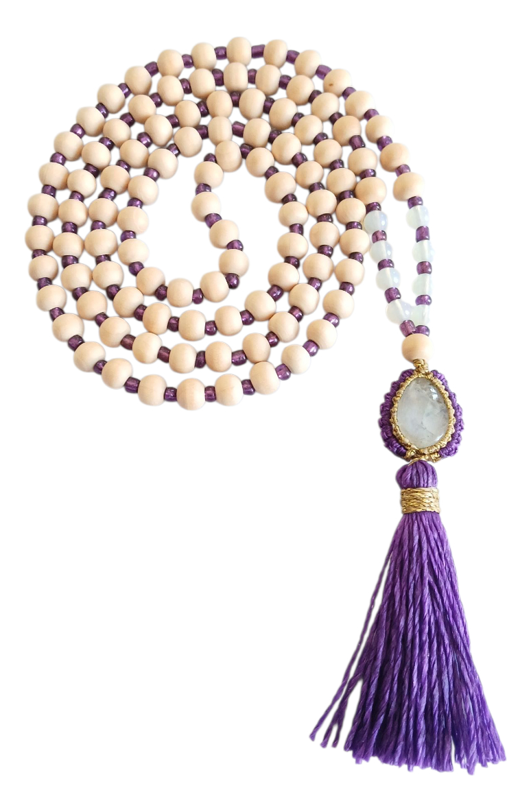Japa Mala Rosario Tibetano Budista 108. Piedra Luna.