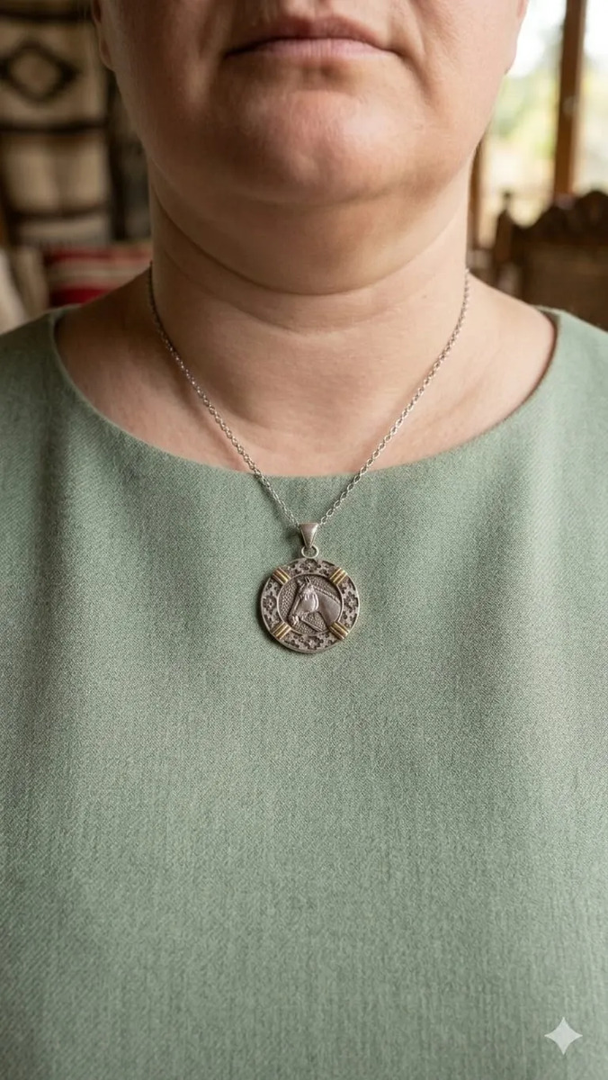 Conjunto Cadena Dije Herradura Y Caballo, Medalla Plata Leve