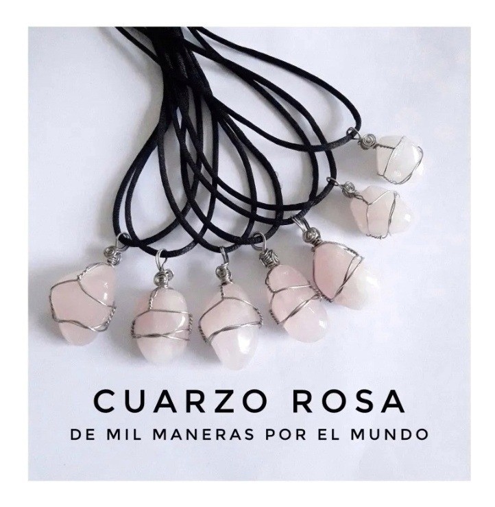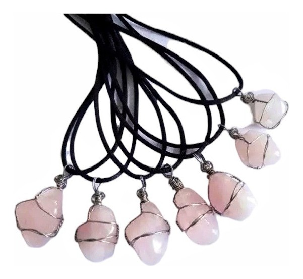 Collar Con Cuarzo Rosa. Regulable En Acero. Piedra Del Amor.