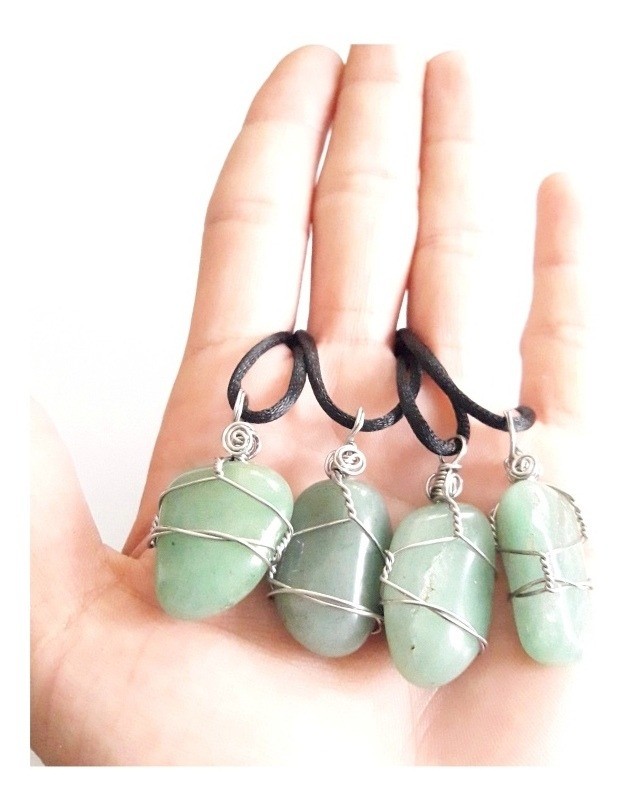 1 DIJE CON PIEDRA NATURAL CUARZO VERDE ENGARZADO EN ACERO