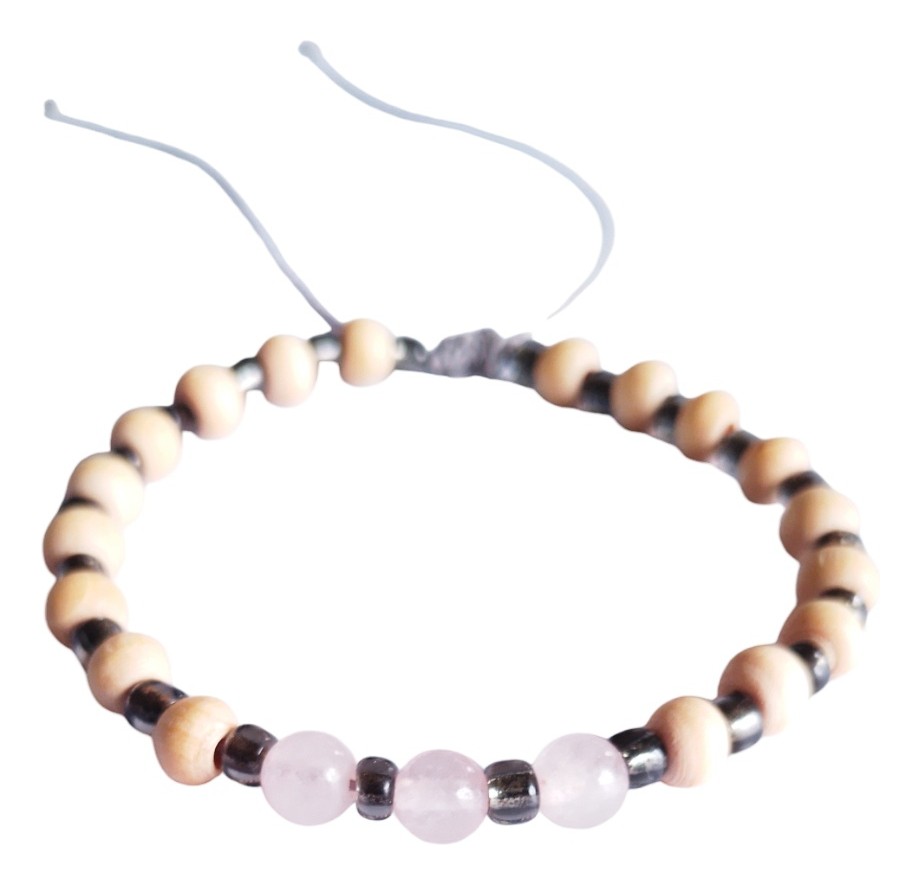 1 PULSERA REGULABLE CON CUARZO ROSA NATURAL Y MADERA
