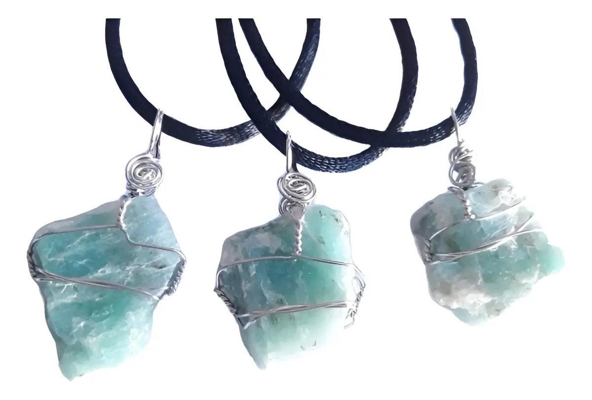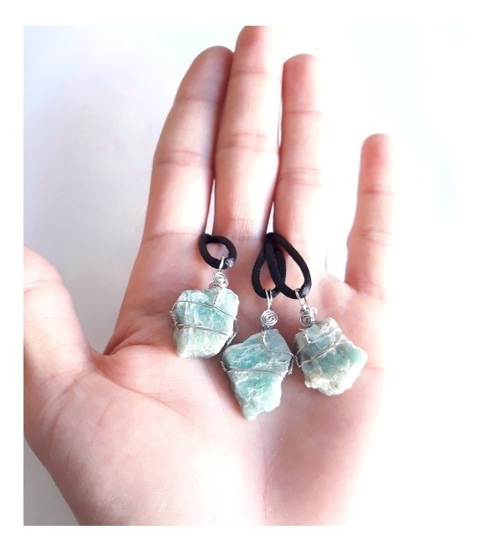 Collar Piedra Amazonita En Bruto. Acero, Cordón Regulable